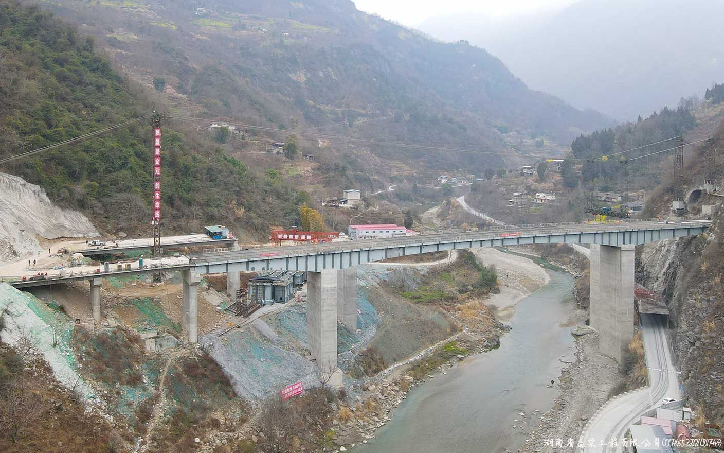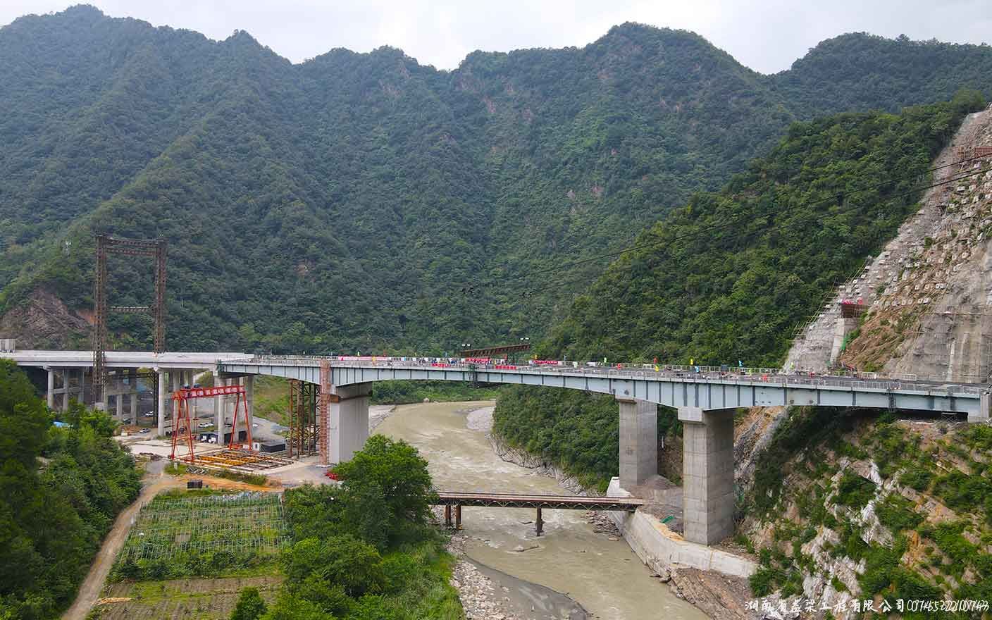 四川省綿陽市九綿高速桑園子大橋主跨為40+110+40m鋼混組合連續(xù)梁,橋梁全長(zhǎng)241m,使用纜索吊機(jī)吊裝懸臂架設(shè)方法施工,施工日期:2021年~2023年