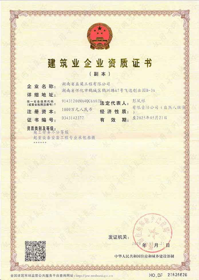 湖南省益梁工程有限公司_鋼結構工程專業承包|起重機安裝|特種工程|橋梁工程